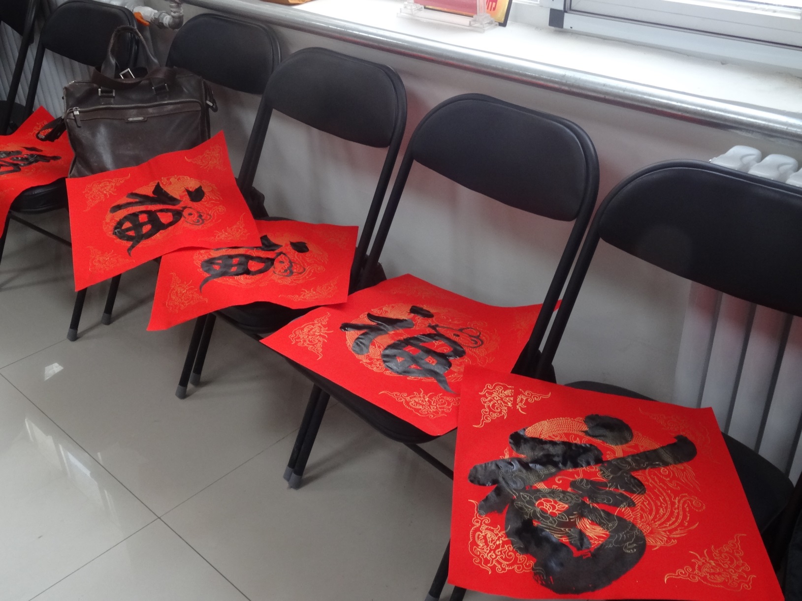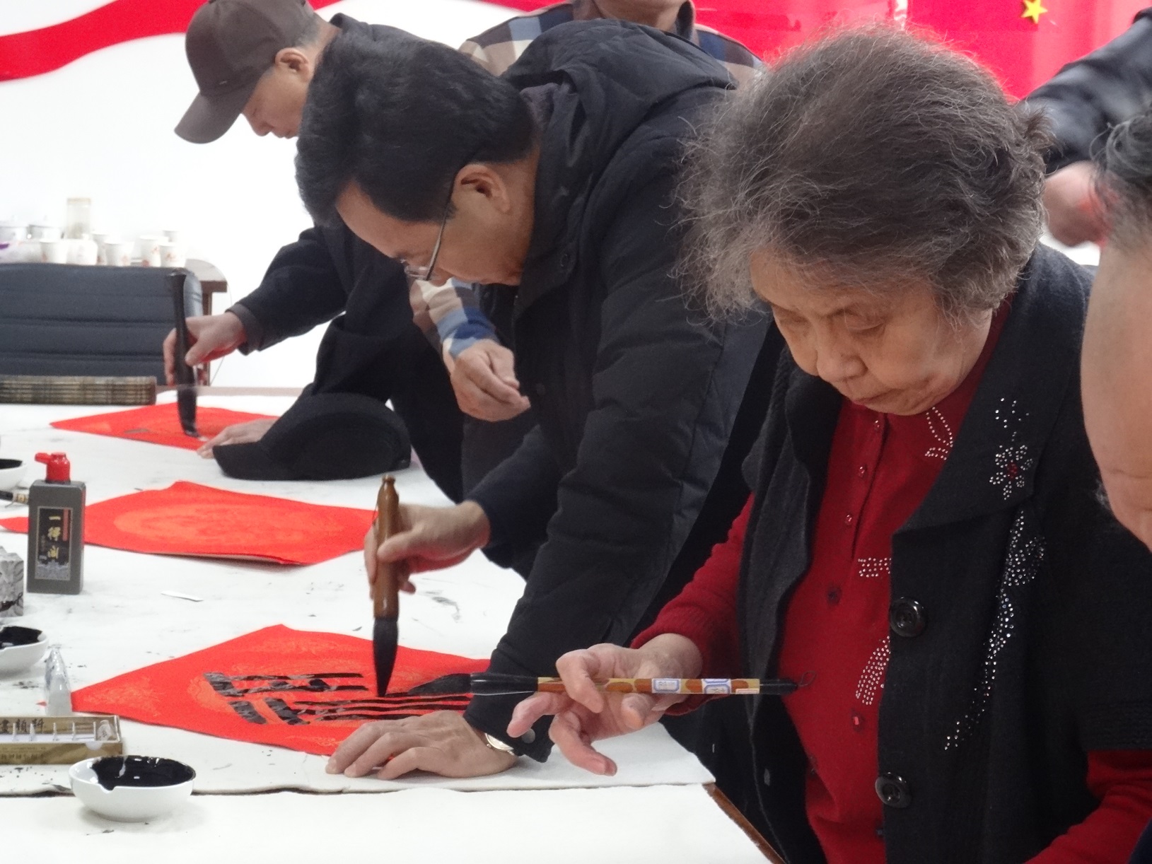 在场的作家书画家不顾长途奔波的疲劳,展纸研墨、挥毫作画,用一幅幅对联、一幅幅作品为村民送上新春的祝福,增添喜庆气氛,受到村民们的热烈欢迎。