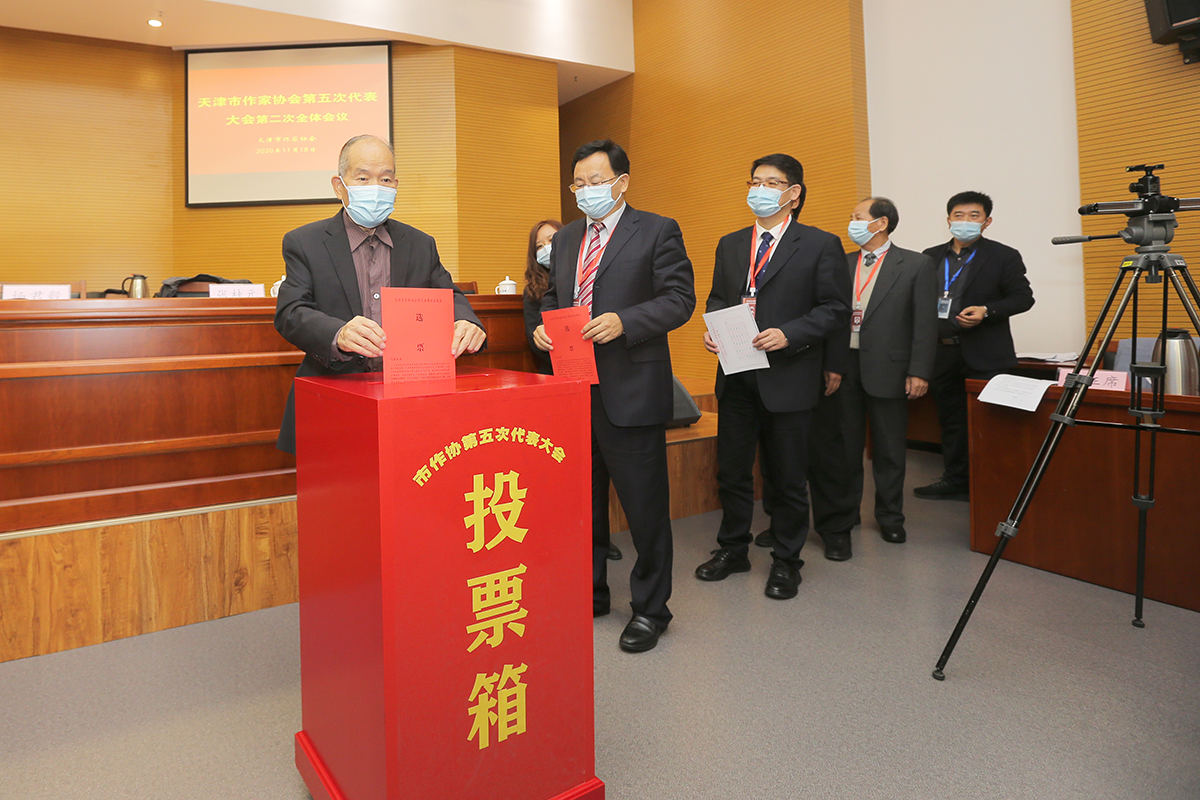 经过民主选举,共有35人当选为天津市作家协会第五届委员会委员,11人当选为主席团成员。其中,尹学芸当选为天津市作家协会主席,李彬、张桂元当选为专职副主席,闫立飞、李鹏、杨君毅、张小伟、张永琛、陈丽伟、武歆(按笔画顺序)当选副主席,王岚当选秘书长。市委宣传部和公证处工作人员对选举过程进行了全程监督。