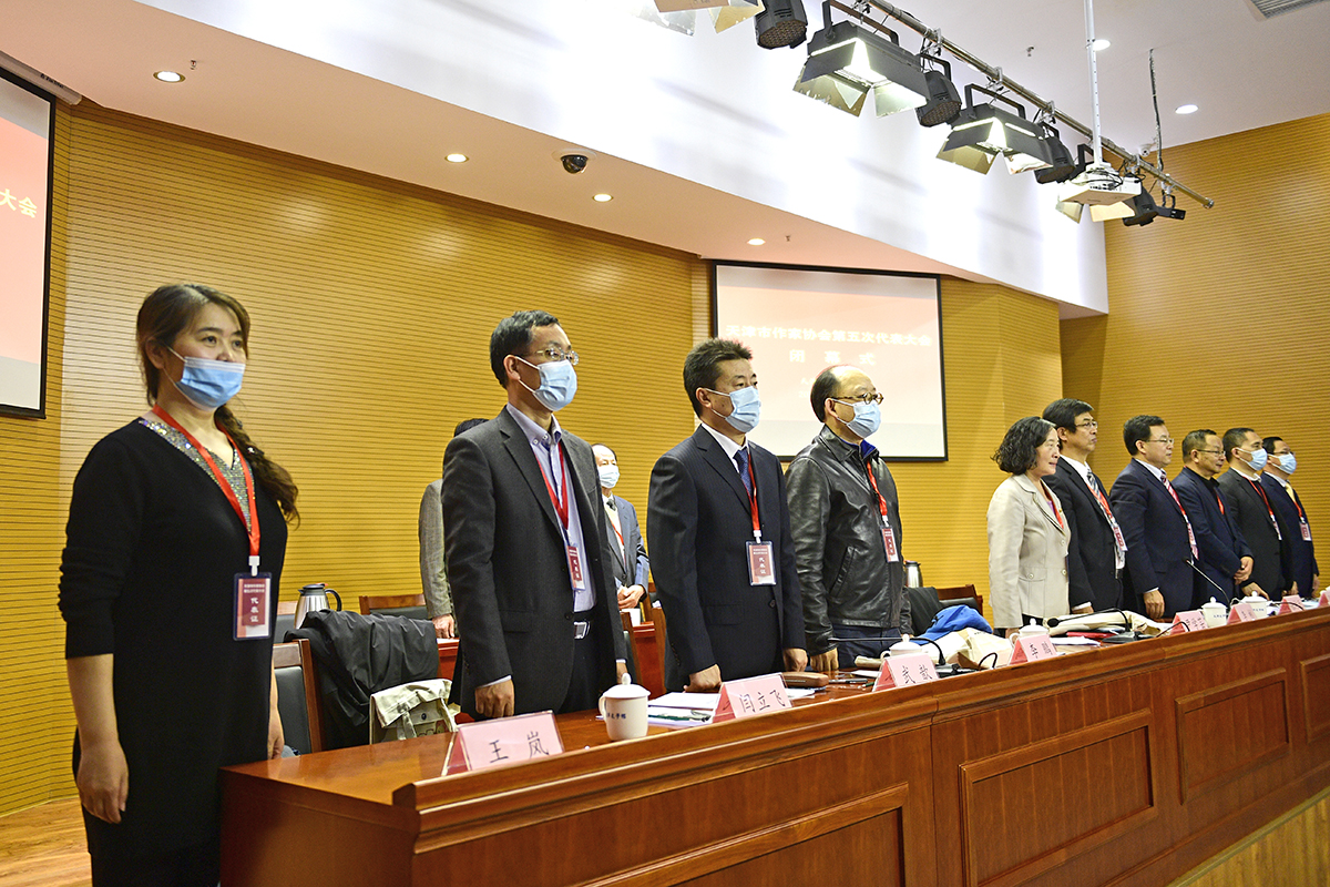 当天下午,在天津文学馆报告厅举行了天津市作家协会第五次代表大会闭幕式,新当选的第五届天津市作家协会主席团成员在台上就座,作协党组副书记、专职副主席张桂元主持了闭幕式。