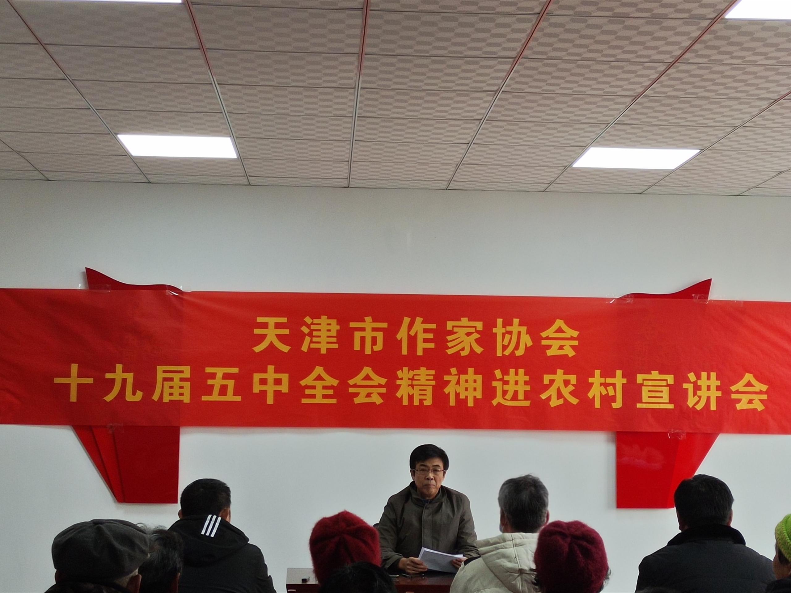 在全市上下掀起学习宣传党的十九届五中全会精神和市委十一届九次全会精神高潮之际,12月9日,市作协党组书记、专职副主席李彬,党组成员、机关党委专职副书记、办公室主任陈小广带领20多位由作家、书法家和机关工作人员组成的“红色文艺轻骑兵”队伍,深入到结对帮扶困难村——宝坻区牛家牌辛庄子村,为困难村的村民进行十九届五中全会宣讲,并组织开展“送文化下基层”志愿活动。